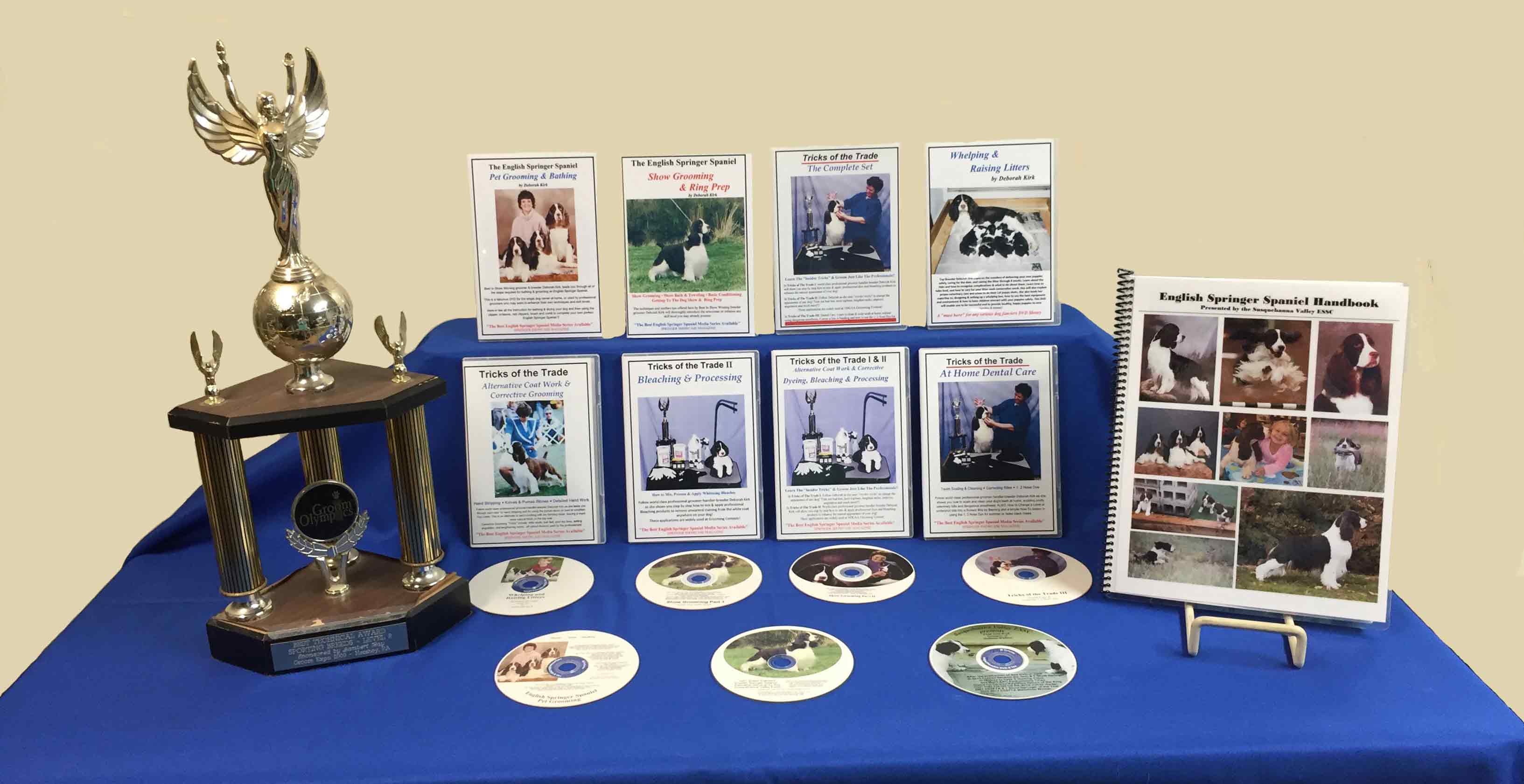 For 1st time pet puppy owners… Learning to Groom your 1st Show Springer… How To Groom Like The Pro's! in “Tricks of the Trade”!… Whelping & Raising Litters Whimsical Musical DVD of our Wonderful Field Trial Springers… The AKC Breed Standard presented by the Susquehanna Valley ESSC with over 200 color photos!